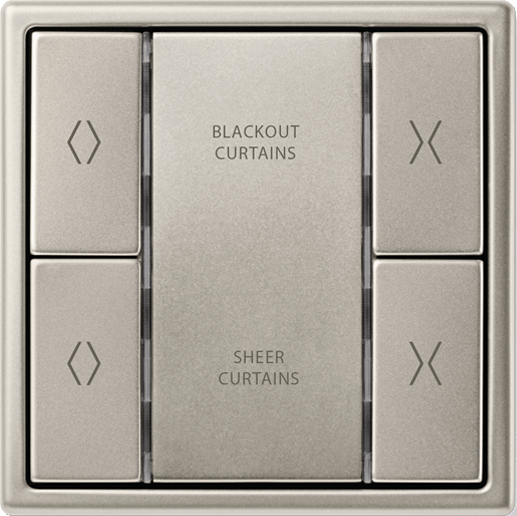 With a matt finish, the LS 990 in Aluminium harmonises well in both light and dark settings. | The KNX F 40 push-button can be programmed with up to 8 functions in just a single switch. |